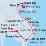Take a fast-paced and far-flung adventure through the heart of Vietnam and Cambodia. On this journey with a small group of likeminded travellers, you’ll spend 17 days traversing the diverse South East Asian countryside through local villages, past stunning coastlines and into bustling cities. Beginning in Bangkok, you’ll mingle with the locals and indulge in some delicious cuisine. Then, make your way to Hanoi in Vietnam’s north. Visit a family in the Mekong Delta, spend a night on the gorgeous Ha Long Bay, eat all the Bahn mi you can handle, then head to Cambodia to tour the UNESCO World Heritage-listed Angkor temple complex. With so much to see, learn and eat – what are you waiting for?