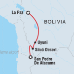 Explore South America's salt flats, ancient deserts, geysers and valleys on this nine-day adventure from Bolivia to Chile. Ride the teleferico (cable car) over the world’s tallest capital city (La Paz), explore the Andrean Desert and travel across the Uyuni Salt Flats with a local leader by your side. Learn about ancient rock carvings at Yerbas Buenas, soak in the hot springs of Polques and see flamingo-filled lagoons and lunar valleys as you cross into the Atacama Desert – one of the driest places on Earth! Cross the border to Chile, watch the sun rise over Rainbow Canyon and indulge in Bolivian and Chilean cuisine every step of the way.