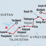 Traverse landscapes of alpine lakes and mountains, only interrupted by yurts, on this 17-day adventure through Kyrgyzstan, Tajikistan and Uzbekistan. Discover the ancient trading square of Registan, see the blue-tiled Madrassas in Samarkand and explore the ruins at Panjakent – once the capital of the ancient Sogdiana country on the Silk Road. Enjoy a picnic lunch on the banks of the Kokomeren River, learn how Kyzyl-Oi locals cook their favourite snack and travel along the Chychkan River, which cuts through the Tien Shan Mountain Range.