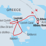 This morning, travel to Epidaurus – a Greek sanctuary on the Peloponnese Peninsula. When you arrive, set out on a guided tour of the ancient archaeological site. Known for its well-preserved 4th-century BCE Theatre of Epidaurus and the Sanctuary of Asclepius, you’ll see the ruins up close and personal. Then, continue to Nafplio for a guided walking tour. According to mythology, the town was founded by Nafplios – the son of the god Poseidon. After your walking tour, enjoy some free time before visiting a local ouzo distillery. Learn how one of Greece’s most famous drinks is made, and sample it for yourself, before continuing to Loutra. Along the way, cross the Korinthian Canal, which links the Gulf of Corinth in the Ionian Sea with the Saronic Gulf in the Aegean Sea.
