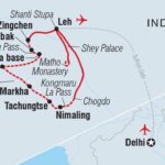 Today, you’ll tackle Kongmaru La – the second pass on the Markha Valley trek. From the pass, take in the sights of Kangyatze one last time, then descend into the long, narrow gorge for spectacular natural scenery. You’ll arrive in Chokdo, then drive back to Leh through green, fertile lands. Along the way, visit Hemis Gompa – a Himalayan Buddhist monastery believed to be the wealthiest and biggest monastery in the city. Spend the night back in the city, celebrating a long and rewarding trekking adventure.