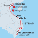 Uncover all the good bits of Vietnam on this ten-day adventure through backstreets, villages, cities and waterways, all with a local leader by your side. Trace the east coast and visit UNESCO World Heritage-listed landscapes while you fuel yourself with banh mi and condensed milk coffee. Try some authentic street food, wave to fishermen on the Mekong Delta and get the inside scoop on the best tailors of Hoi An. Take a motorbike through the ancient streets of Hue and spend a night on Halong Bay. This is an adventure full of life, colour and flavour that introduces you to the highlights of a fascinating nation with a small group of likeminded travellers.